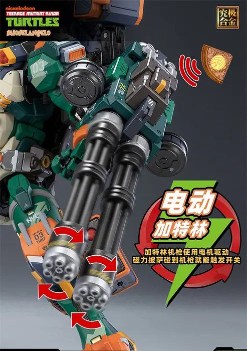 This Michelangelo figure will take your figure collection to the next level! He is a fully articulated mech figure that is ready to hit the streets to take on the Foot Clan! Open up the back to reveal a mini Michelangelo figure!