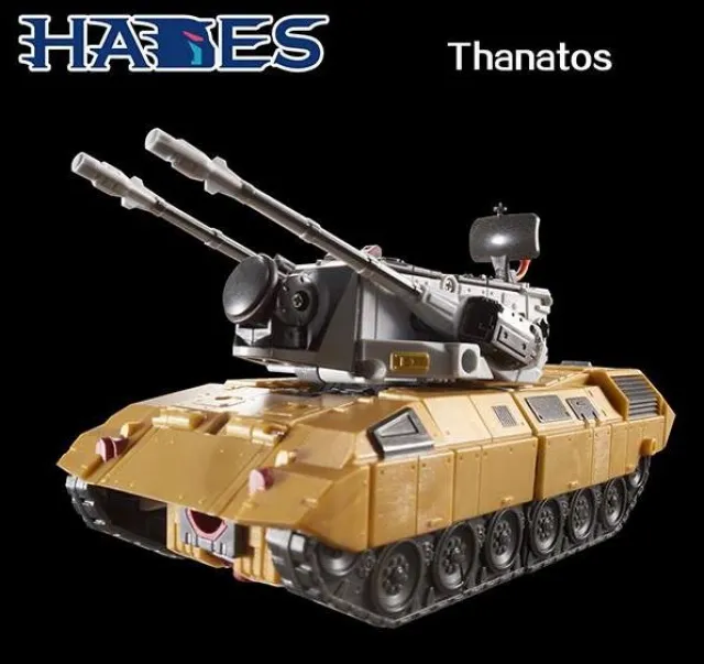 H-02 Thanatos is a battle robot that can transform into a desert tank. Thanatos also becomes one of the legs for the combining figure Hades.