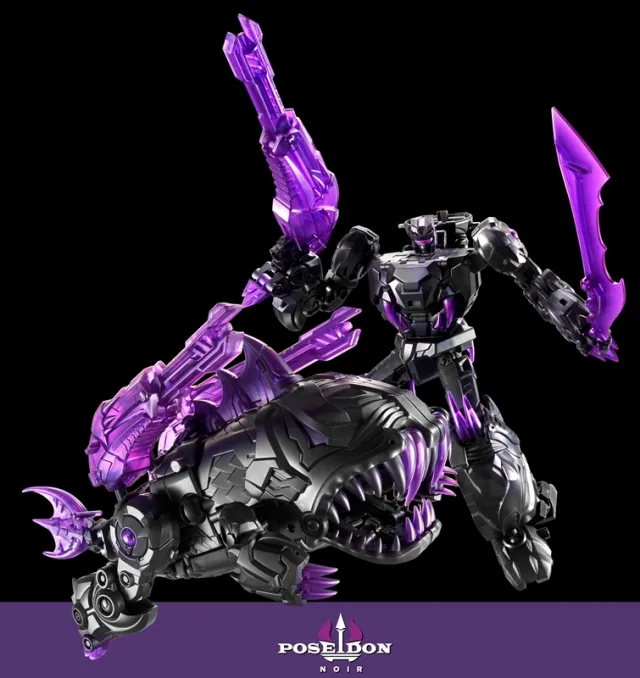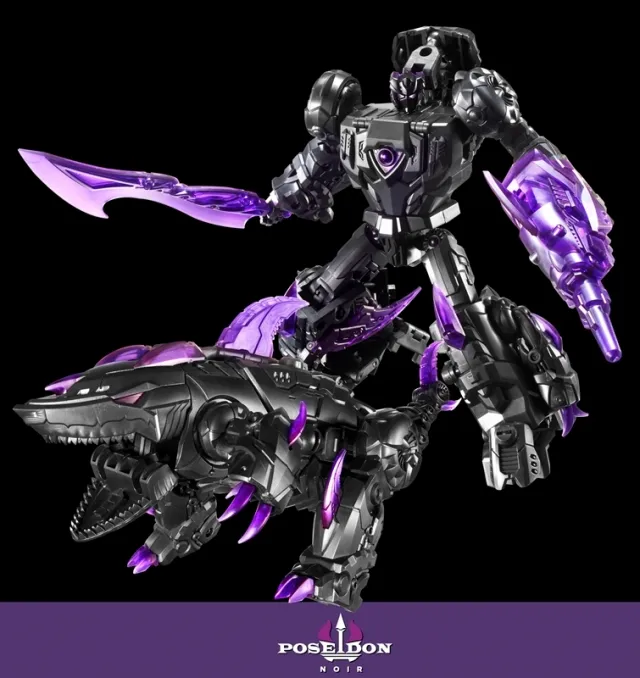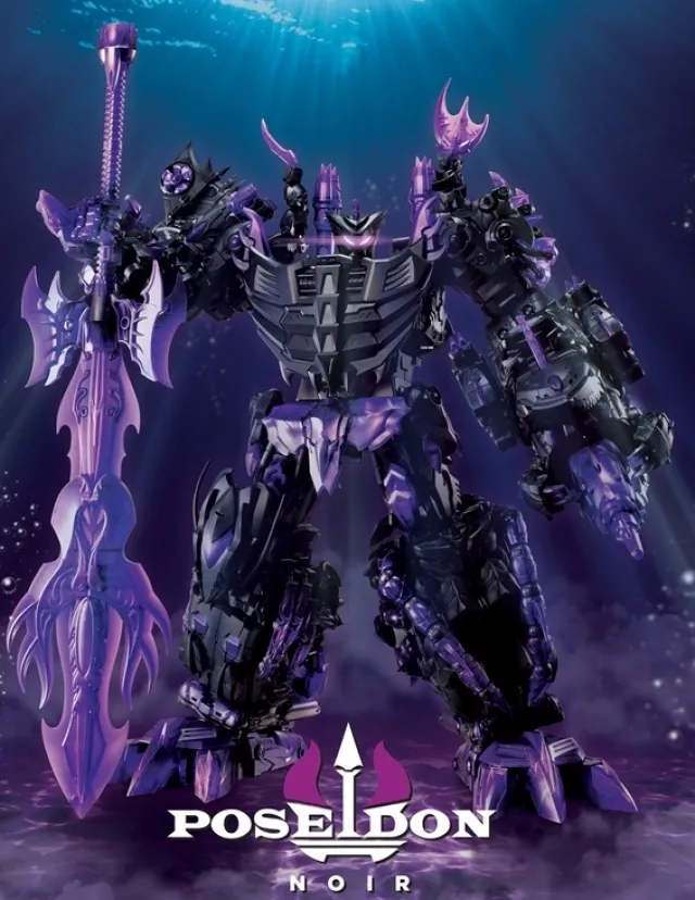 TFC Toys - P01-06N Poseidon Noir - Limited Edition is the terror of the deep! Poseidon Noir is a limited edition release featuring ablack and purple color scheme and this set comes packaged all in one box. TFC's Poseidon is one of the largest combiners ever made, MP scale features six deep sea figures that transform and combine together to form the mighty Poseidon!
