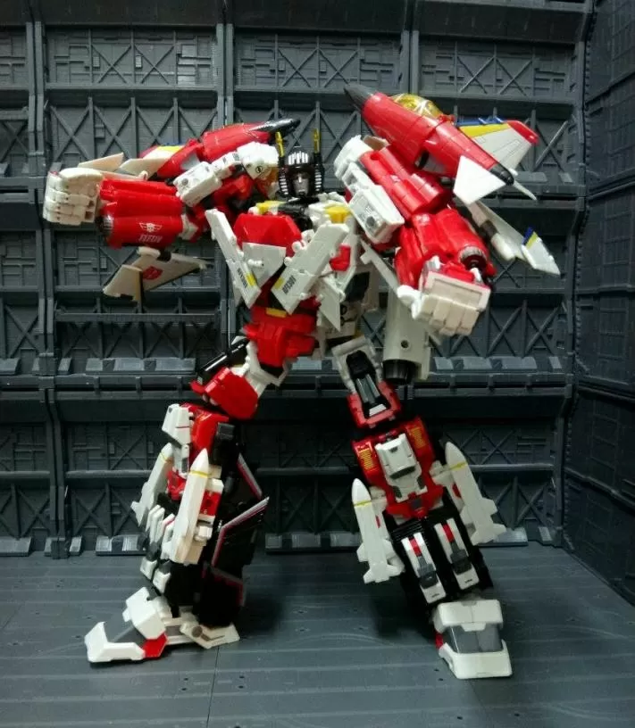 This set includes all five of the Uranos team members: F4 Phantom, F-15 Eagle, F-16 Falcon, AV-88 Harrier II and Blackbird & Phantom Ray. Together they merge to form the mighty combiner Uranos!