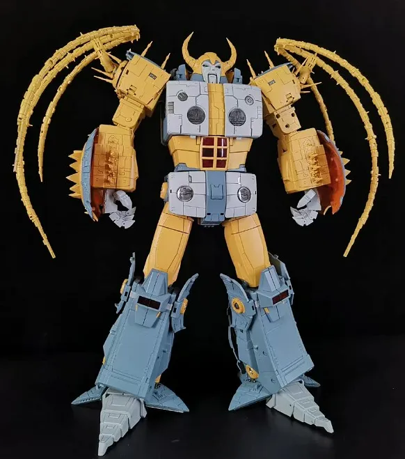 This figure stand almost 17-inches tall in robot mode, and includes a variety of accessories. This figure will include the head accessory piece.