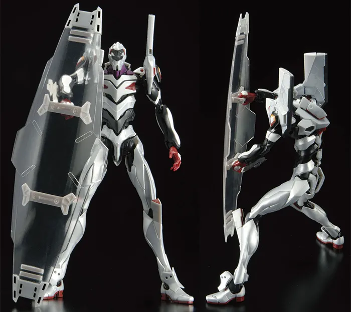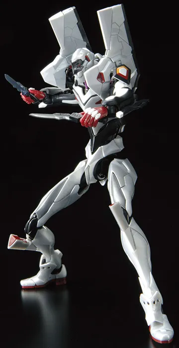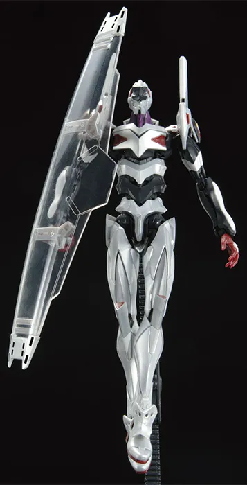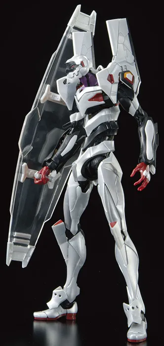 EVA Unit-04 joins the Real Grade model kit series! The characteristic colors have been recreated by color molding, along with a riot shield and blaster that can be held by the EVA Unit.