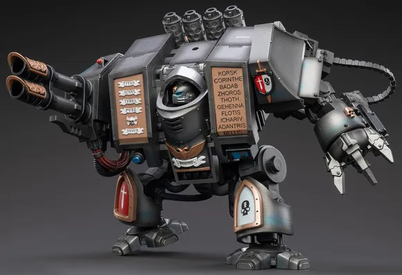 The Grey Knights Dreadnought is one of the rarest and most advanced Dreadnought variants in Imperial service, used exclusively by the Grey Knights Chapter. Containing the mortal remains of a fallen Space Marine, these cybernetic combat walkers allow the oldest and wisest Space Marines to still fight on behalf of the Emperor and his chapter. Interned in a decorated sarcophagus inscribed with protective prayers, runes, and other wards, they are armed with close and long-range weaponry and even psychic defenses that have made them formidable for thousands of years.