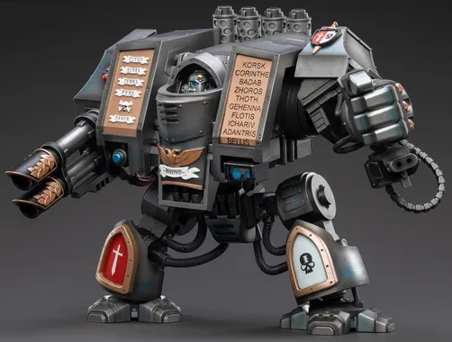 Captured in highly detailed 1:18 scale form with articulated joints to capture the full intimidating power of the Grey Knight Dreadnought, this figure is sure to please fans of the acclaimed war game Warhammer 40k and beyond!