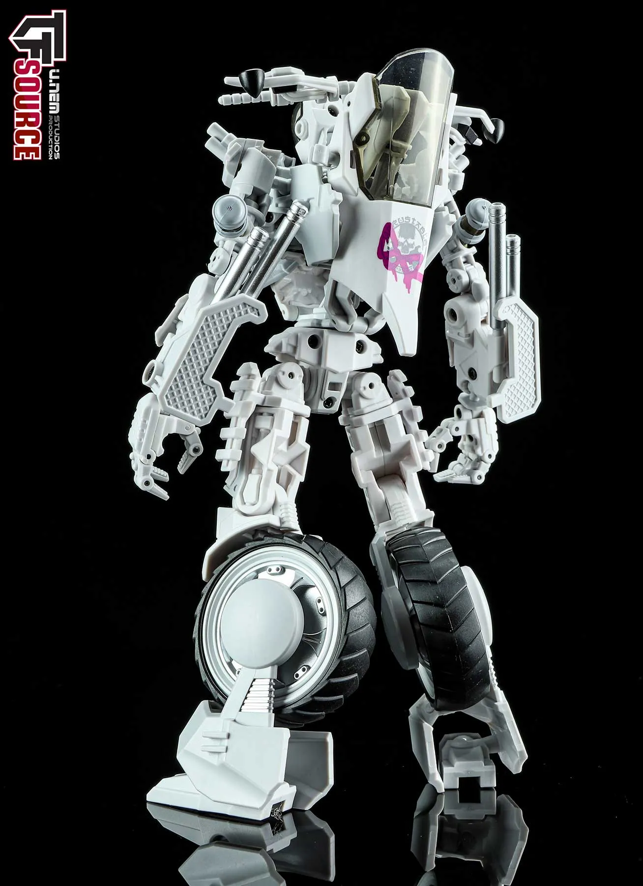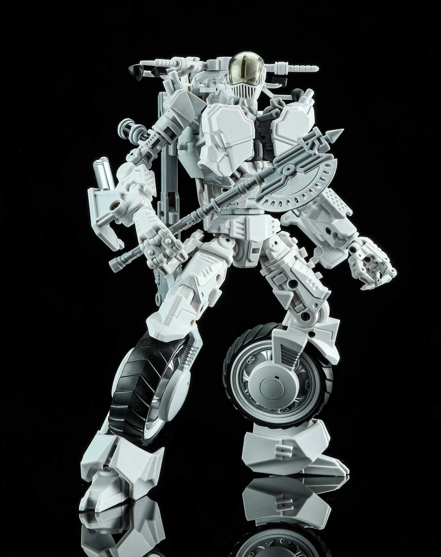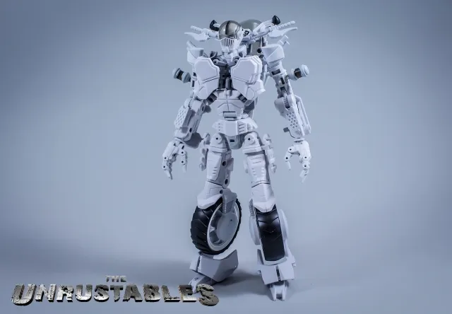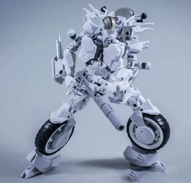 Introducing Mayhem Mekanics' second project, MM02 the Untrustables Spector Rogues. A 1:18 scale transforming Mech Bike that when in robot mode, integrates the driver as the chest portion of the robot. Figure stands 8.7-inches / 22CM tall in robot mode and each set includes one bike, one rider and several weapons. Figure features 27 points of articulation.