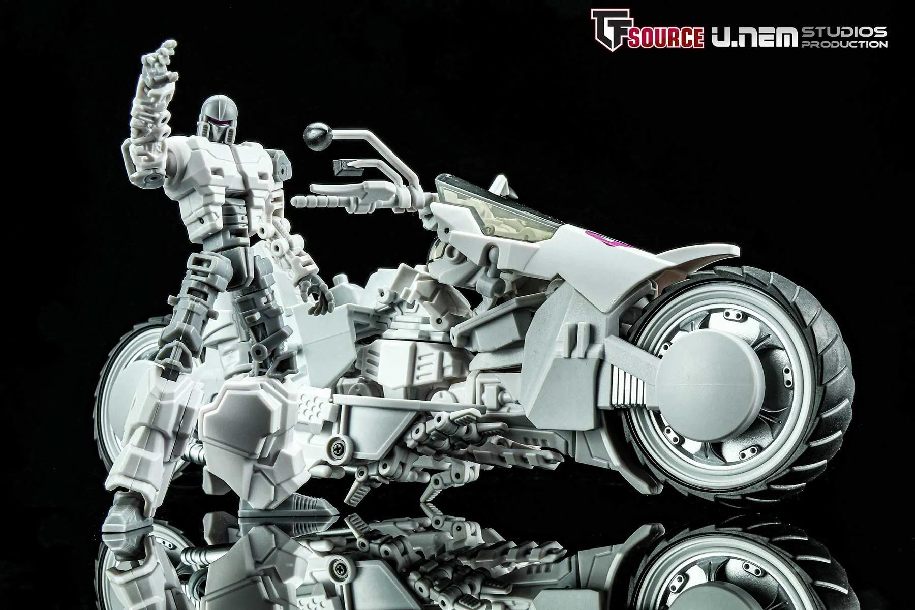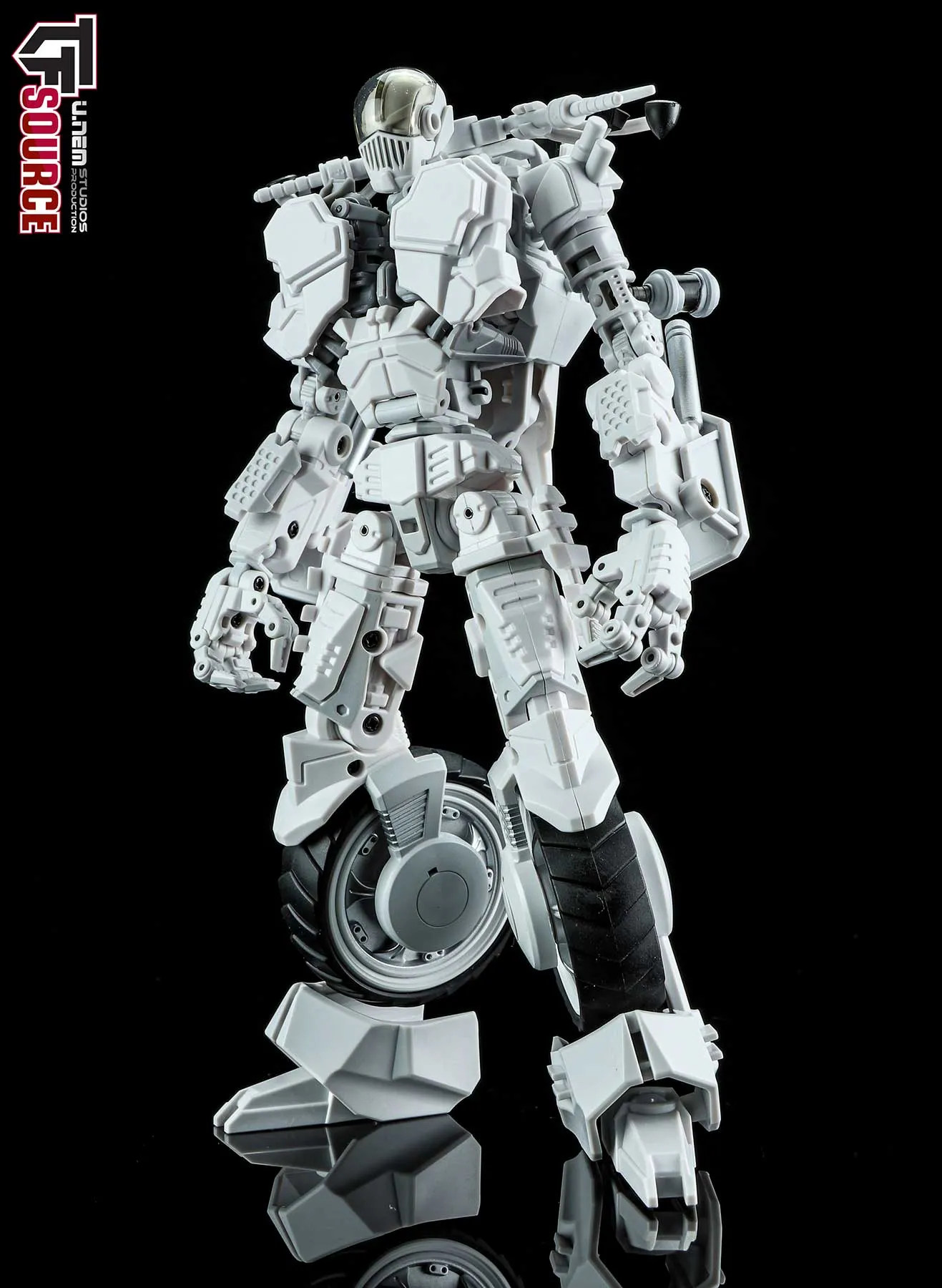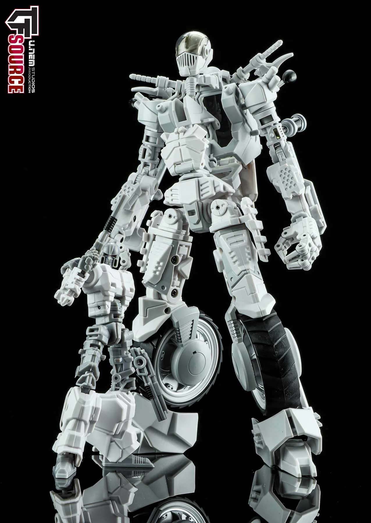 Introducing Mayhem Mekanics' second project, MM02 the Untrustables Spector Rogues. A 1:18 scale transforming Mech Bike that when in robot mode, integrates the driver as the chest portion of the robot. Figure stands 8.7-inches / 22CM tall in robot mode and each set includes one bike, one rider and several weapons. Figure features 27 points of articulation.