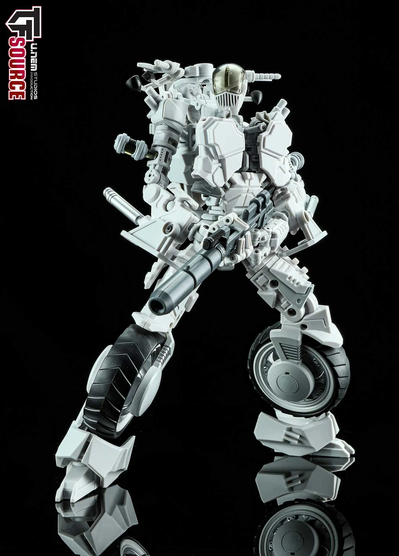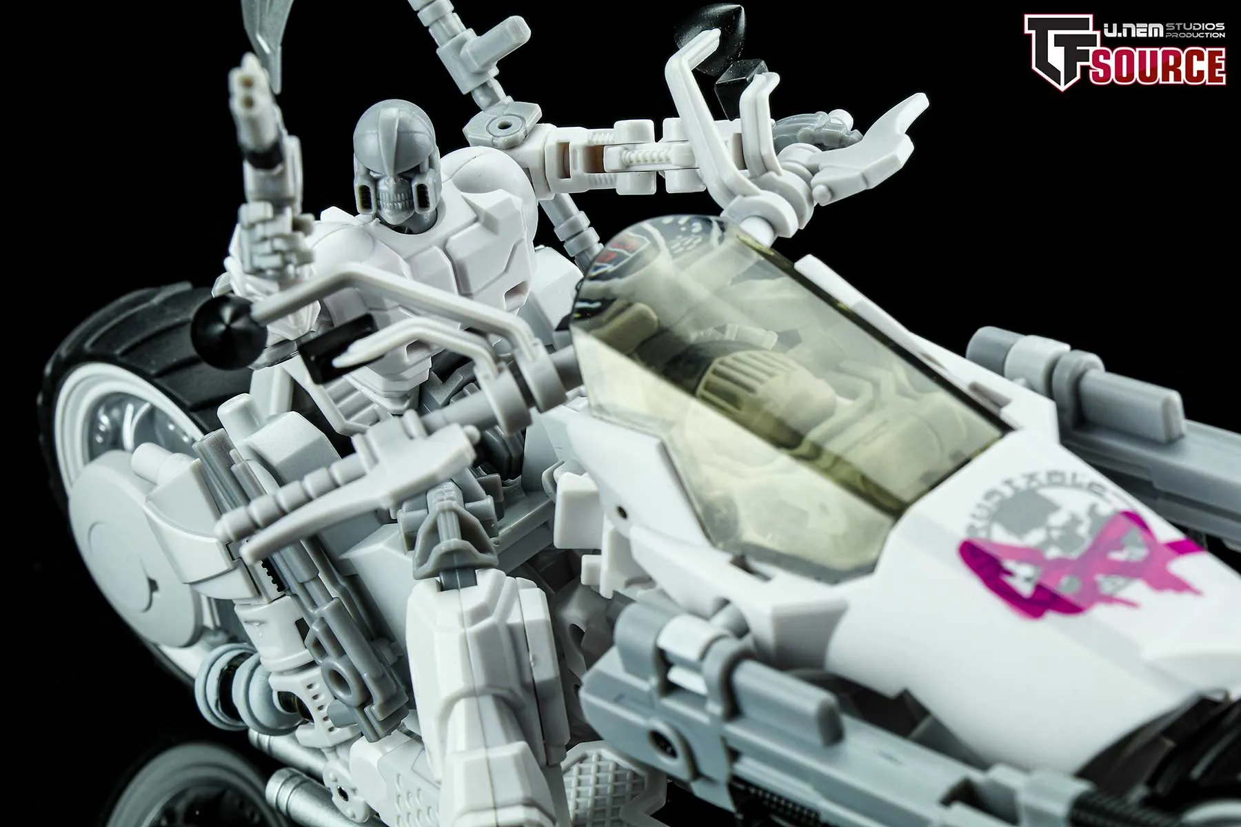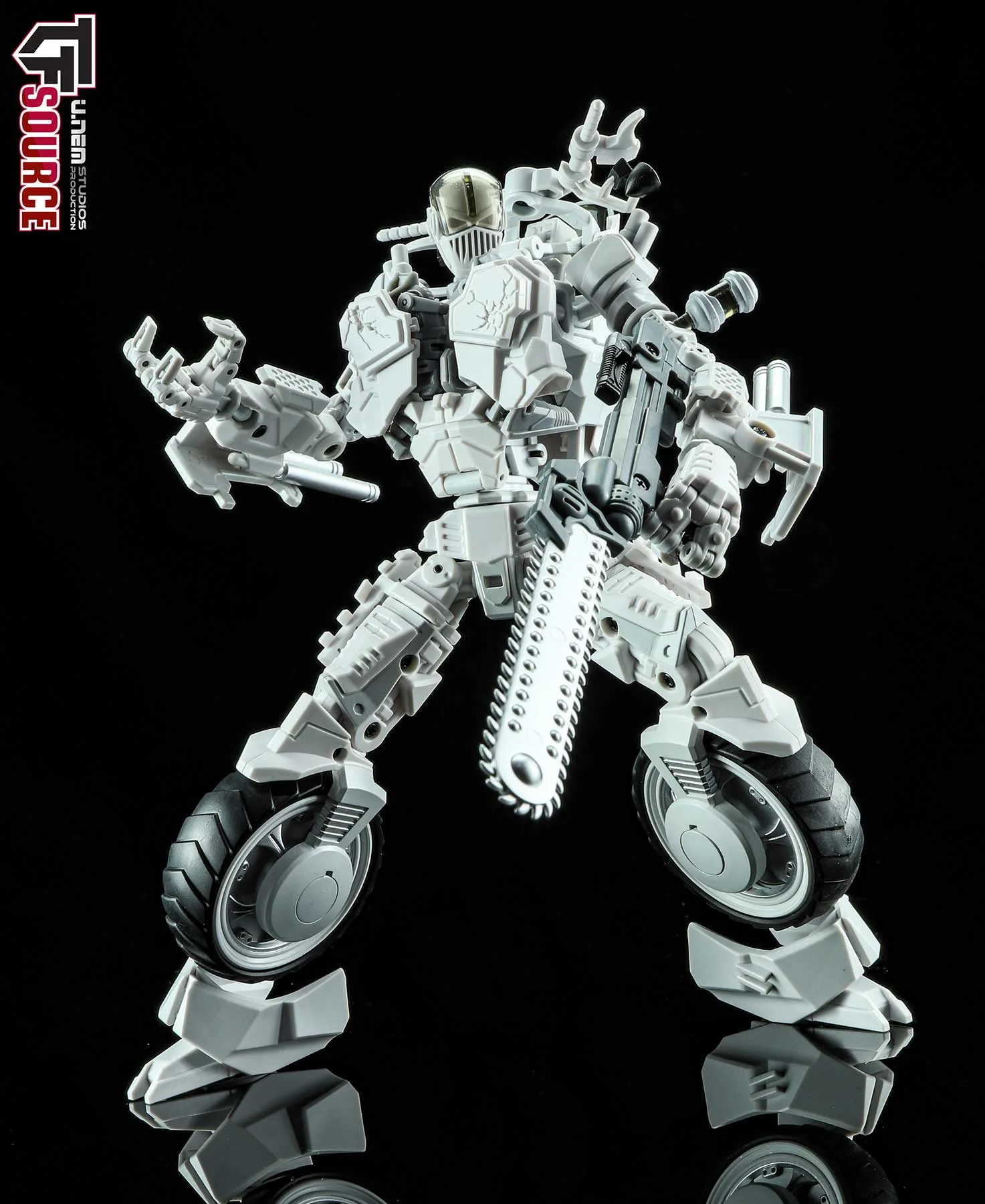 The Unrustables Cybertech Series MM02 Specter Rogues rifle and buzzsaw attachment can attach to his bike