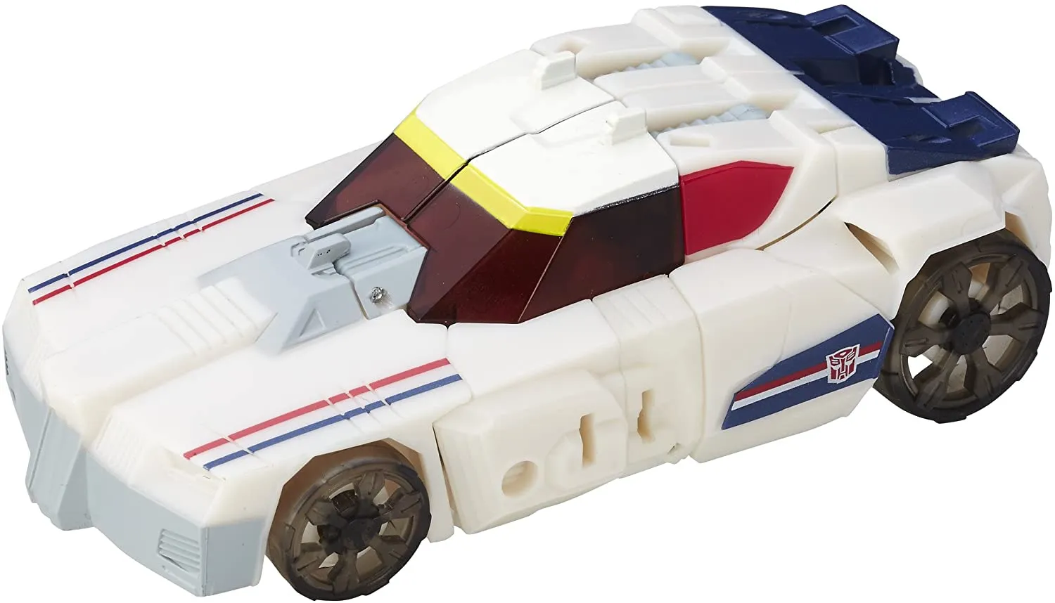 The Autobots unite with Titan Master partners to power up for battle. When Autobot Breakaway unites with Autobot Throttle, he gains a second power source that boosts his speed high enough to make him uncatchable.