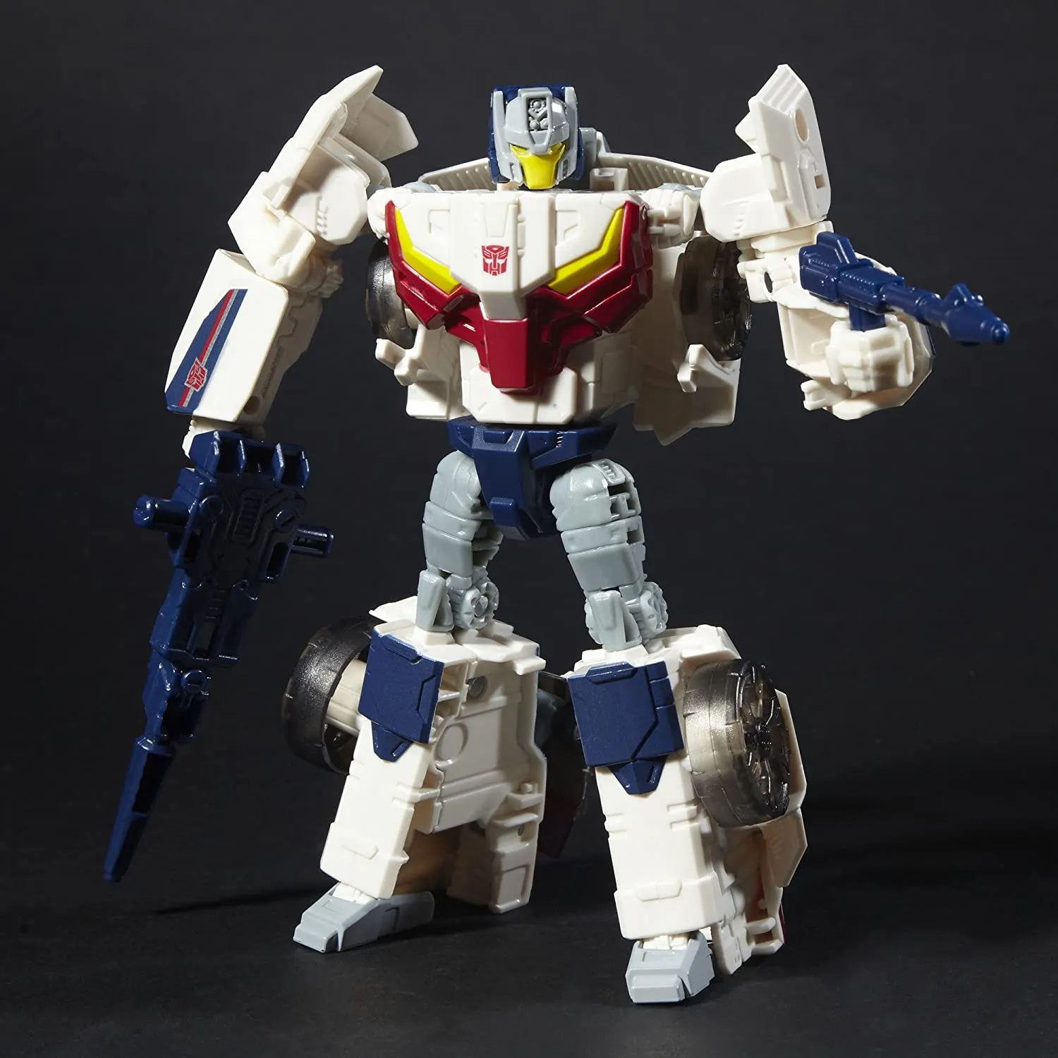 Find the Best Team-Ups Transformers Generations Titans Return Deluxe Class figures are 5.5-inch scale figures that come with a Titan Master figure. The Titan Master figure becomes the head of the Deluxe Class figure. It also works with Deluxe Class, Voyager Class, and Leader Class Titans Return figures (each sold separately). In Titans Return, the Autobots and Decepticons unite with Titan Masters, small bots that carry a power boost. Titan Masters are key to controlling an ancient race of warriors the size of cities: the Titans. Character Specs: Autobot Breakaway: escape artist Autobot Throttle: speed boost Unite and power up for battle. Figure Specs: Deluxe Class Autobot Breakaway Modes: robot, sports car Converts in 12 Steps Works with other Titan Master figures (each sold separately) 2 accessories Comes with a collector card with tech specs Titan Master Autobot Throttle Modes: robot, head Converts in 1 step Transformers and all related characters are trademarks of Hasbro. |