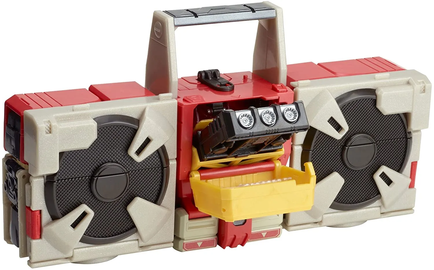 Titan Master figures can become the head for Deluxe Class, Voyager Class, or Leader Class Titans Return figures. Unite this Titan Master Twin Cast figure with other bots to create different combinations, or unite other Titan Master figures with this Autobot Blaster figure. Additional figures are each sold separately. Subject to availability. This Triple Changer Autobot Blaster figure converts between robot, boom box, and city modes. It converts from robot to boom box in 19 steps and from boom box to city in 13. In city mode, the figure connects to the Titans Return Fortress Maximus figure (sold separately) to form a giant Cybertron City. Titans Return Legends Class figures Autobot Rewind and Autobot Stripes fit inside the Autobot Blaster figure's chest compartment. Additional figures are each sold separately. Subject to availability. The Titan Master Twin Cast figure converts from robot to head and back in 1 step. When the Autobot Blaster figure is in city mode, the Twin Cast figure fits inside. Also includes a pulse rifle accessory and a collectible character card with tech specs. Transformers and all related characters are trademarks of Hasbro.