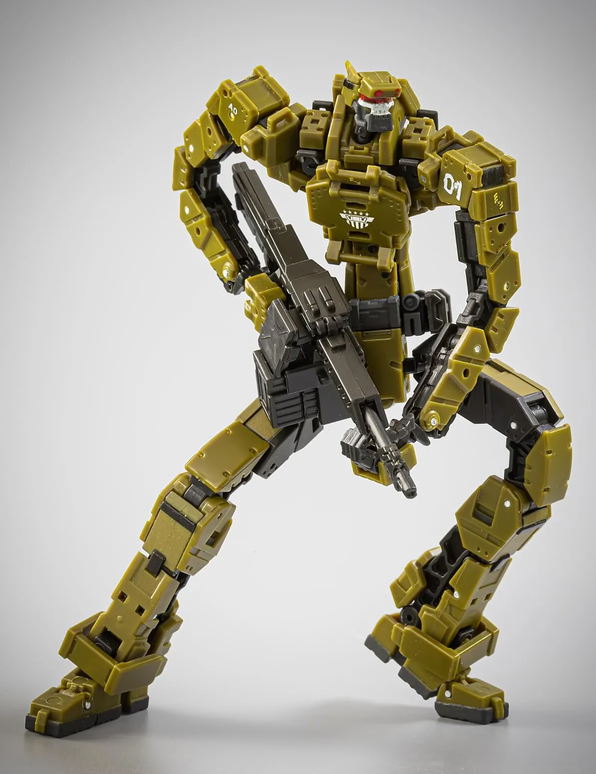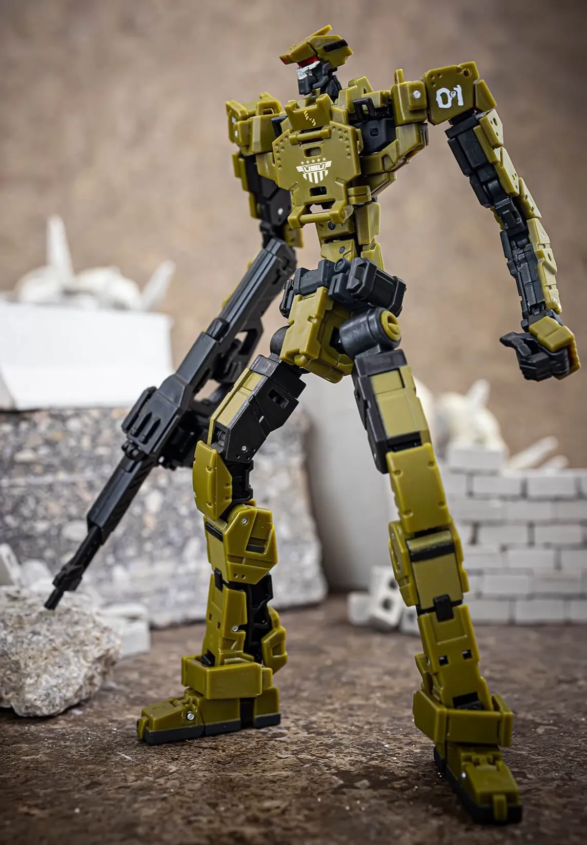 Disparaged as TRASHCAN by humans, AFRS Type 1 is a dreadful combatant to humans in the battle field. It is built with a slim and rigid body, and equipped with a modified Stoner 63A machine gun and a pair of fold-in-sleeve tactical blades. It is powered by a compact V-flow system which can be easily swapped internally when the power gets low.