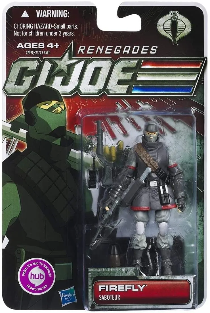 FIREFLY is a saboteur hired by COBRA to perform acts of sabotage and destruction. He has a high opinion of himself and his skills and he's not wrong. He's an expert with explosives, all kinds of weapons, martial arts combat and infiltration. He works alone, he hides his identity, and the only kind of trouble he likes is the kind he himself causes.