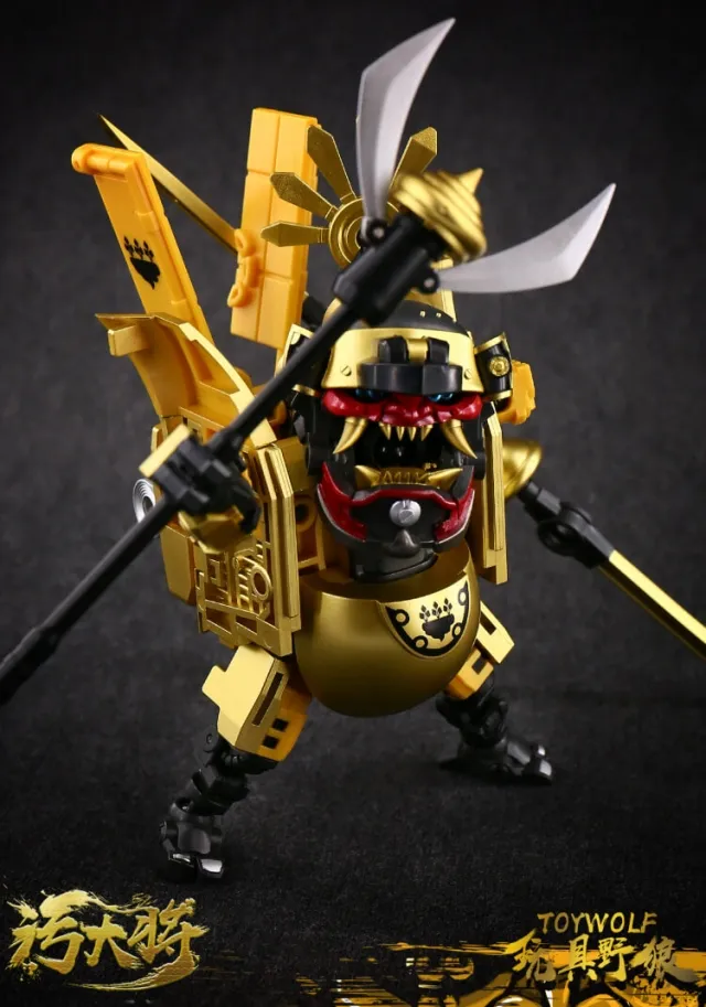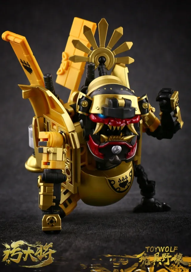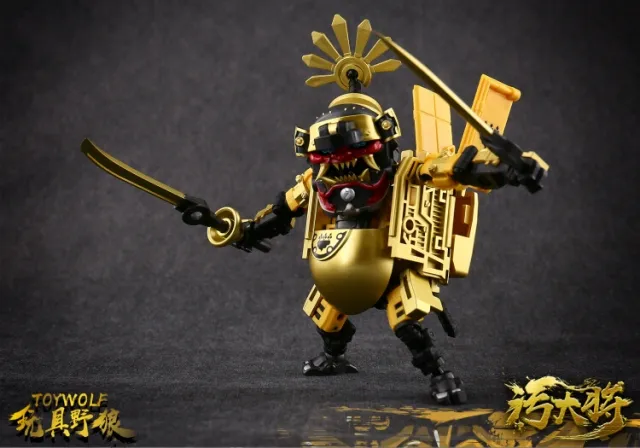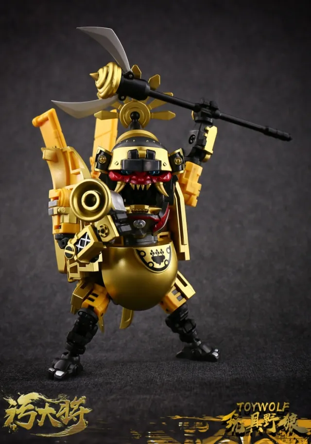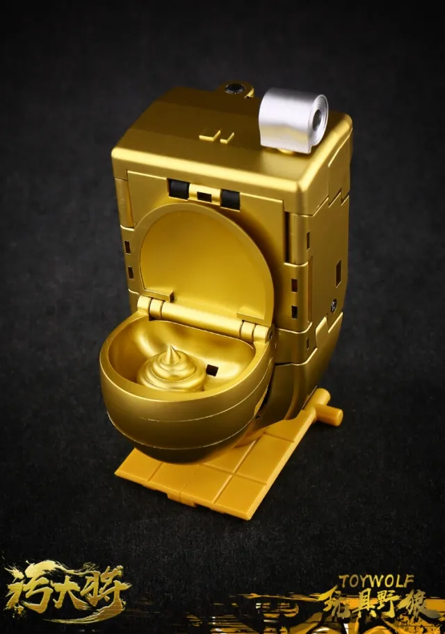 TW W-01G - Dirty Man Gold by Toywolf transforms from a toilet to robot and back and features accessories such as two samurai swords, toilet paper, plunger and more. Figure stands approximately 12CM/4.8" tall in robot mode and scales with 6" figures.