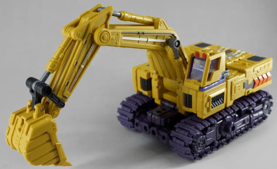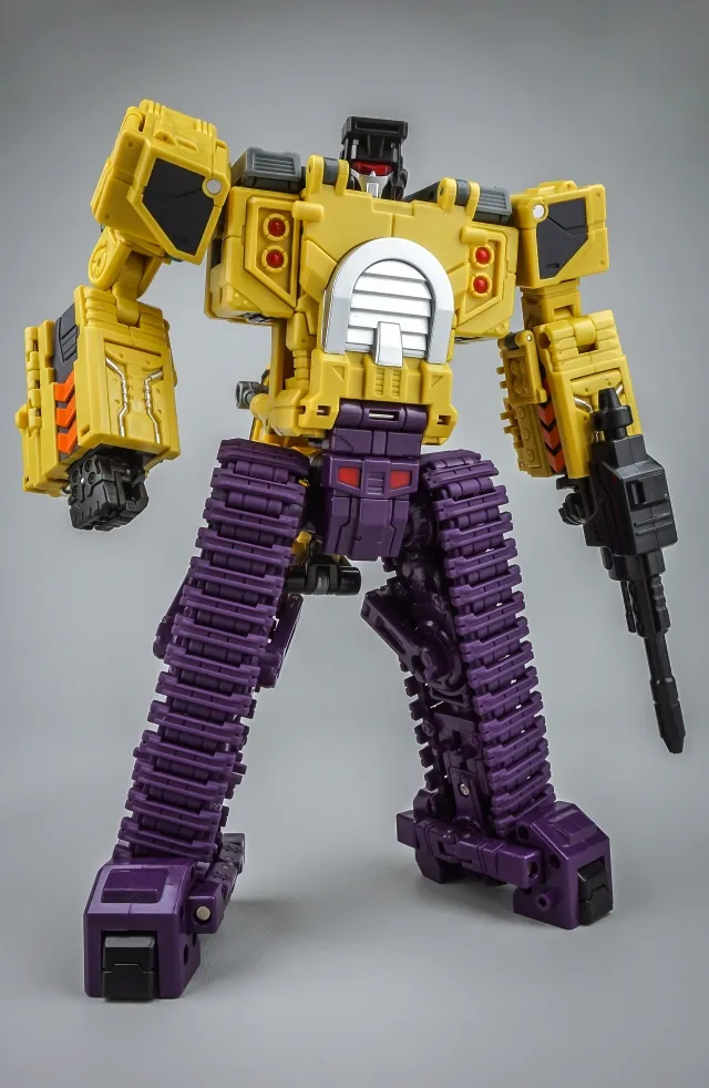 This mighty construction combiner will stand around 20"/50CM tall when combined! Robots feature moving tank tracks, LED lights, and weapons that fire.