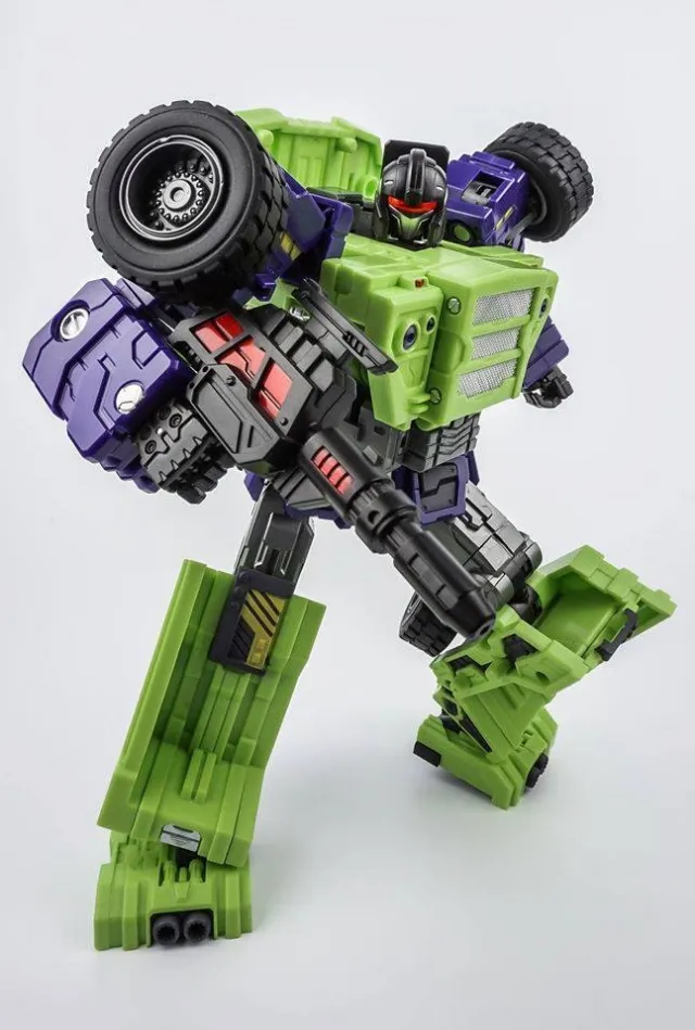 This mighty construction combiner will stand around 20"/50CM tall when combined! Robots feature moving tank tracks, LED lights, and weapons that fire.