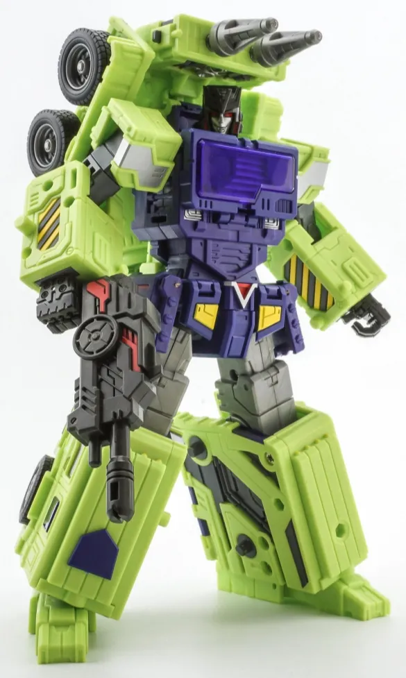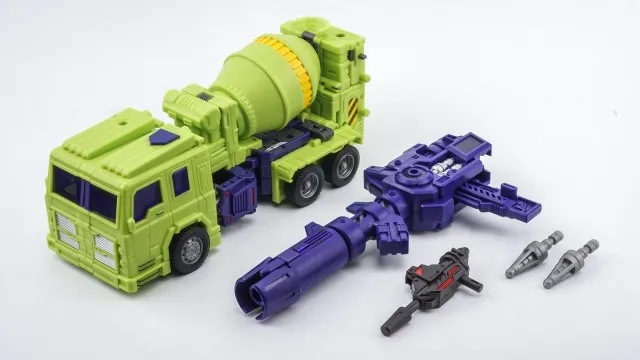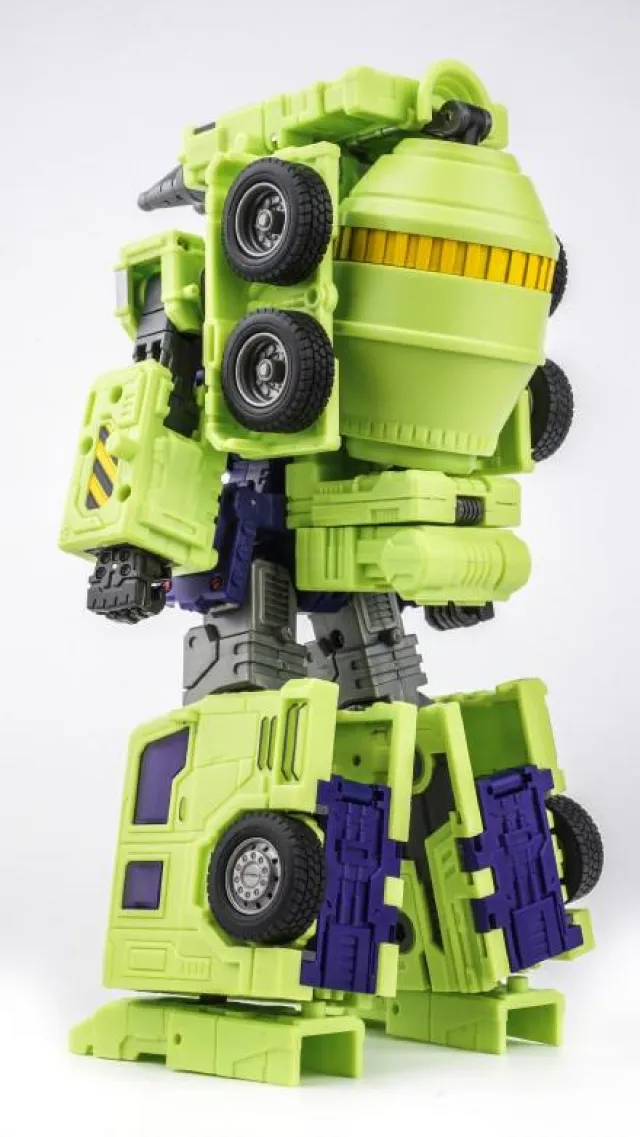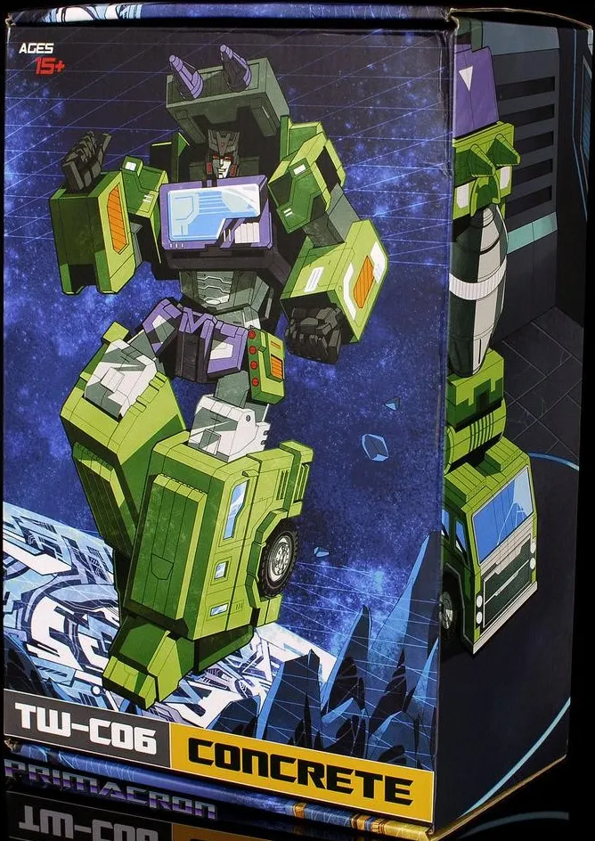 TW-C06 Concrete transforms from a mixer truck to robot and back! When combined with the other 5 figures (sold separately), this mighty construction combiner will stand around 20"/50CM tall when combined! Robots feature moving tank tracks, LED lights, and weapons that fire.