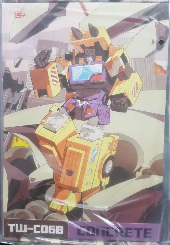 TW-C06 Concrete transforms from a mixer truck to robot and back! When combined with the other 5 figures (sold separately), this mighty construction combiner will stand around 20"/50CM