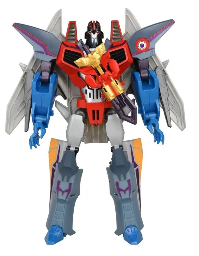 TAV57 Hyper Surge Starscream is a Japanese Exclusive figure released by Takara Tomy in Japan. TAV57 Hyper Surge Starscream is a Japanese recolored version of the US Transformers Robot in Disguise figure.