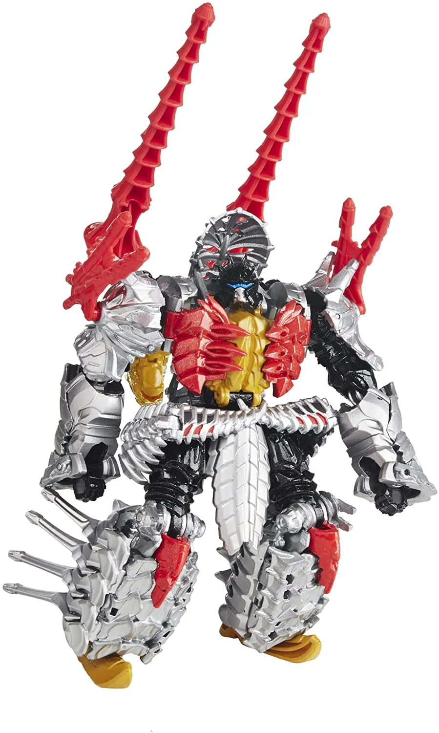The Dinobots know that he can clear a path through any enemy line...as long as they point him in the right direction first. Gear up for massive Transformers action with this awesome 2-in-1 Slog figure! This Dinobot warrior is a heavily armed dynamo in robot mode, taking vicious swipes at the Decepticons with his 2 swords. But he'll mow them down when he's in rumbling dino mode!