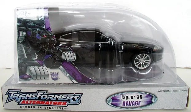 Transformers Alternators Ravage is a 1:24th scale figure that is officially licensed by Jaguar and manufactured by Hasbro.