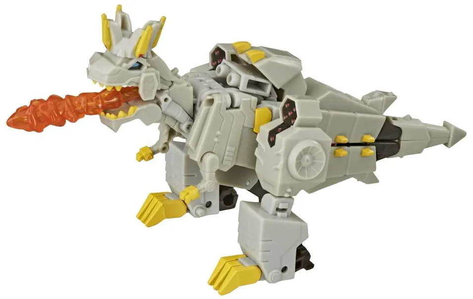 Simply convert Grimlock figure from robot to dino mode in 28 steps. The last step of conversion activates the figure’s Chomp Jaw attack in both robot and dino mode! Once converted, move can be repeated through easy reactivation steps.