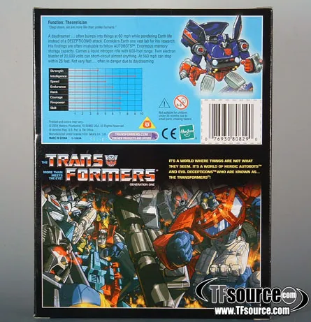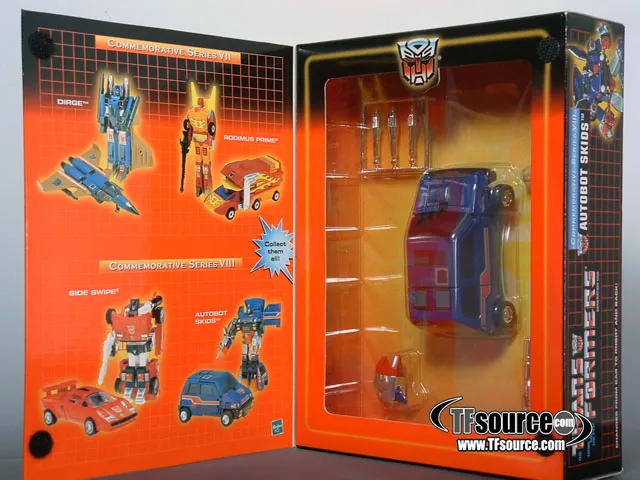 The Transformers Generation One Commemorative Series is a store exclusive line featuring reissues of the original Generation 1 toys. Featuring both G1 Autobots and Decepticons this series was released in the early 2000's and includes primarily main Transformers G1 characters originally released in 1984-1986. Each figure comes in unique Commemorative Series window packaging allow collectors to open the front flap of the toy and see each Transformer figure without having to break the seal on the sides of the box.