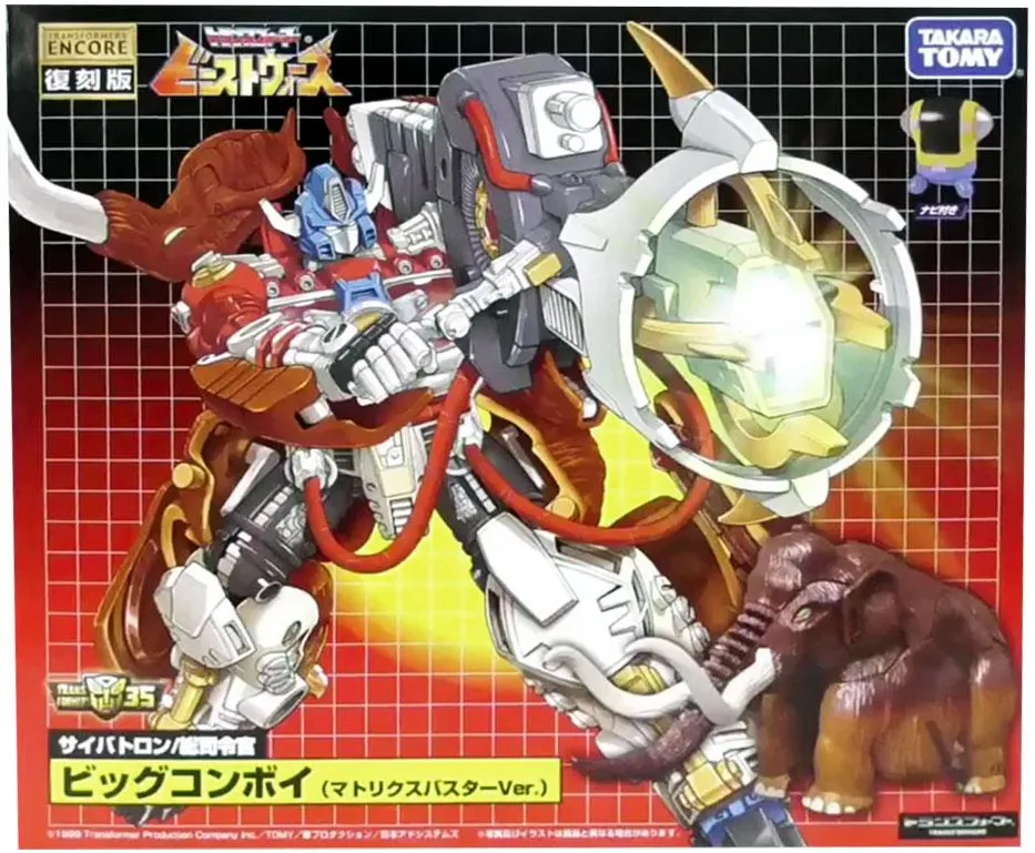 Transformers Encore series features reissues of popular series of Transformers lines. This limited edition Takara Tomy Mall Exclusive reissue of Big Convoy comes in original toy colors compared to the anime-accurate deco of the recent Encore reissue. Also included is a massive Matrix Buster cannon seen during the final battle in the Beast Wars Neo cartoon. This accessory can be inserted in Big Convoy's Matrix inside his cannon. The Matrix buster is very detailed, including cables that connect to Big Convoy's body. Finally, only available with this release is a small Navi figurine is included too. Navi was a small flying drone/computer that helped Big Convoy and his crew to control their spaceship Gung-Ho.