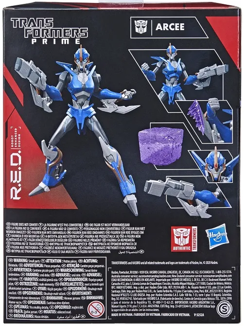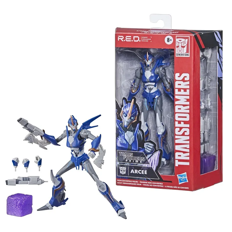 Highly poseable with 60 deco ops, this R.E.D. figure was designed to bring collectors the most screen-accurate version of the character to display on their shelf. The reliable Autobot soldier, Arcee, from the Transformers: Prime animated series features 26 points of articulation. Includes 2 ion blasters, 2 sets of alt hands, 2 forearm blades accessories with slash effects, and a dark Energon crystal accessory. Chest piece can be removed to reveal figure detail beneath inspired by what would be the inner workings of a Transformers robot.