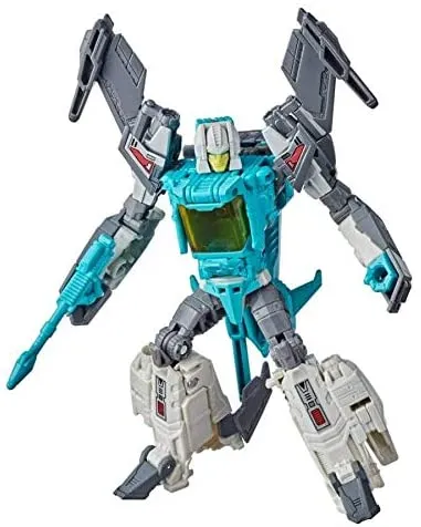This Autobot Brainstorm figure converts from robot to jet mode in 17 steps. Autobot Brainstorm figure's head coverts into Headmaster Pilot Autobot Arcana figure. Includes 2 blaster accessories.