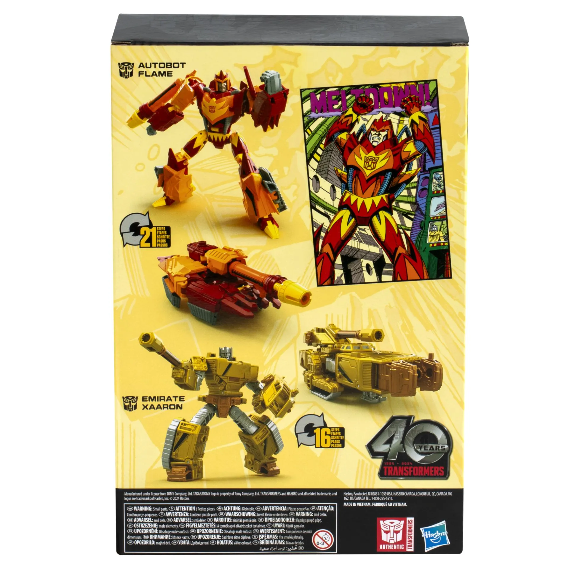 Add to your Takara Tomy Transformers Generations 40th Anniversary line and order your new Flame & Emirate Xaaron Comic Edition | Online Exclusive today from TFSource!