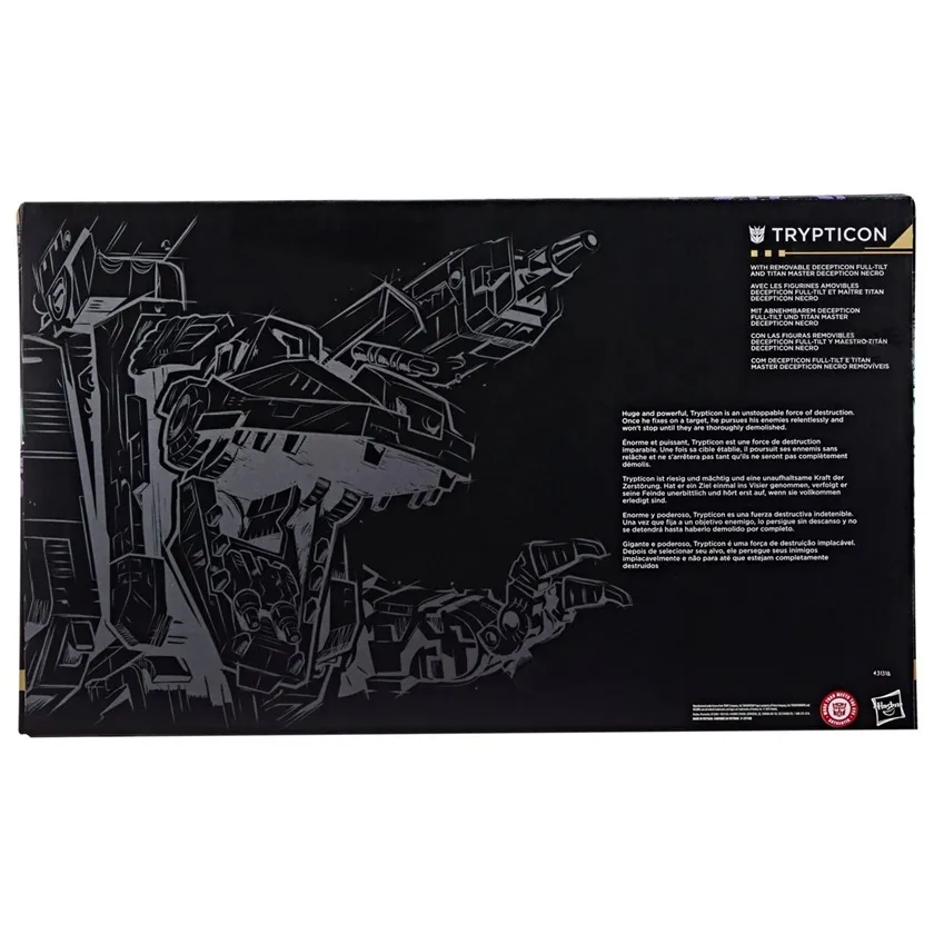 This pack includes the 18-inch (45cm) Trypticon figure and the 5.5-inch (4cm) Decepticon Full-Tilt figure, which has a removable head that converts to the Titan Master Decepticon Necro figure.