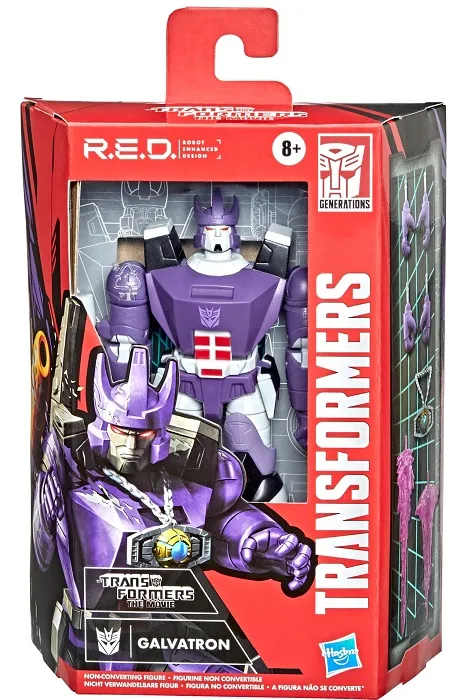 Highly poseable with 70 deco ops, this Galvatron R.E.D. figure was designed to bring collectors our most screen-accurate version of the character to display on their shelf. The ruthless Herald of Unicron is inspired by the character’s appearance in the 1986 animated film, The Transformers: The Movie and features 24 points of articulation. Includes 4 alt hands, 2 blast effects, and Matrix of Leadership accessories, plus clear grid field backdrop.