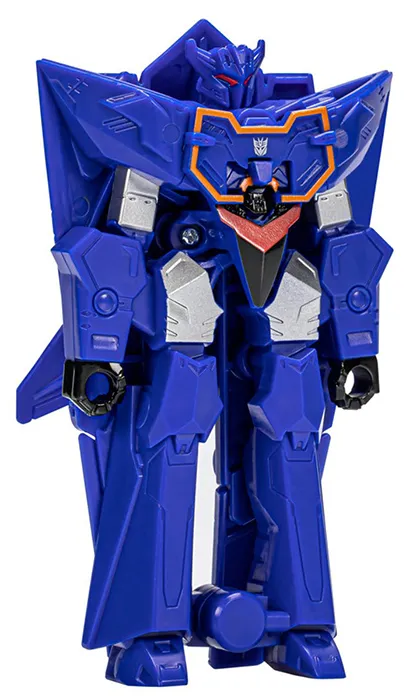 1-Step Flip Changer action figures feature popular characters as seen in Transformers: EarthSpark animated TV series (each sold separately, subject to availability). Convert Soundwave toy from robot to jet mode by flipping the bot into the air! When the robot toy sticks the landing after an excitingly fun 1-step flip motion, the conversion to jet mode is complete. With only 1 step of conversion back to robot mode, the toy offers fidget-fun kids can do over and over again!