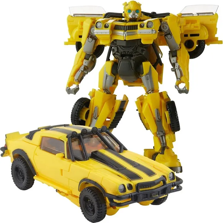 Transformers Studio Series 100 Bumblebee is Deluxe Class and stands approximately 4.5-inches tall in robot mode. 100 Bumblebee transforms from Sports Car to robot and back and is screen accurate to the Transformers: Rise Of The Beasts live action movie. Each Studio Series figure jumps out of the big screen and into your collection with a high attention to detail and accurate color schemes reflecting their appearance in the Transformers live action movie.
