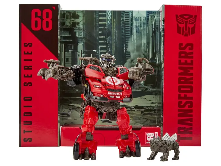 This Studio Series 58 Deluxe Class Roadbuster figure features vivid, movie-inspired deco and converts from robot to Chevy Impala mode in 23 steps. Remove backdrop to showcase Roadbuster in the Battle of Chicago scene. Includes a detailed weapon accessory.