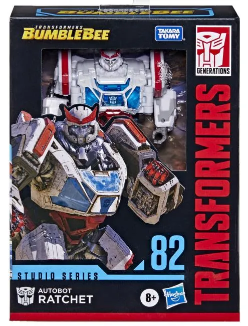 Transformers Studio Series 82 Ratchet is Deluxe Class and stands approximately 4.5-inches tall in robot mode. 82 Ratchet transforms from Vehicle to robot and back and is screen accurate to the Transformers: Bumblebee live action movie. Each Studio Series figure jumps out of the big screen and into your collection with a high attention to detail and accurate color schemes reflecting their appearance in the Transformers live action movie.