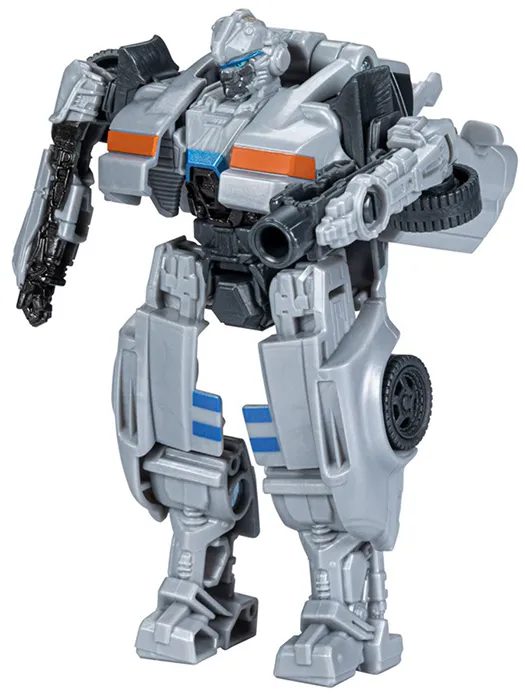 Transformers Autobot Mirage Battle Changer stands approximately 4.5-inches tall in robot mode. Autobot Mirage Battle Changer transforms from sports car to robot and back and is screen accurate to the Transformers: Rise Of The Beasts live action movie. Each figure jumps out of the big screen and into your collection with a high attention to detail and accurate color schemes reflecting their appearance in the Transformers live action movie.