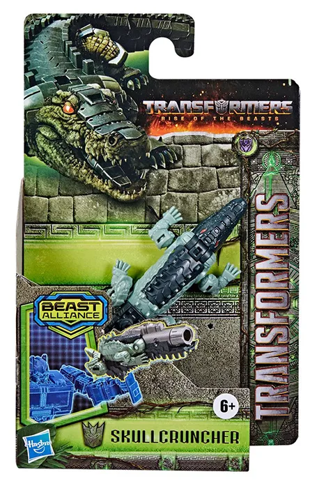 Skullcruncher, the vicious Decepticon warrior, snaps at enemies on the battlefield, then converts into his powerful blaster weapon mode. Classic Transformers robots and beast robots join forces in an epic alliance! Combine the Beast Alliance Beast Battle Master Skullcruncher toy with other Beast Alliance figures to gear up for battle! (Each sold separately, subject to availability.)