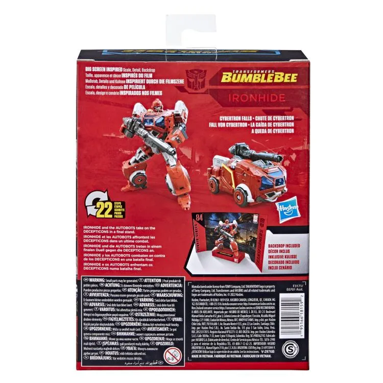 Transformers Studio Series SS 84 Ironhide is Deluxe Class and stands approximately 4.5-inches tall in robot mode. SS 84 Ironhide transforms from Tank to robot and back and is screen accurate to the Transformers: Bumblebee live action movie. Each Studio Series figure jumps out of the big screen and into your collection with a high attention to detail and accurate color schemes reflecting their appearance in the Transformers live action movie.