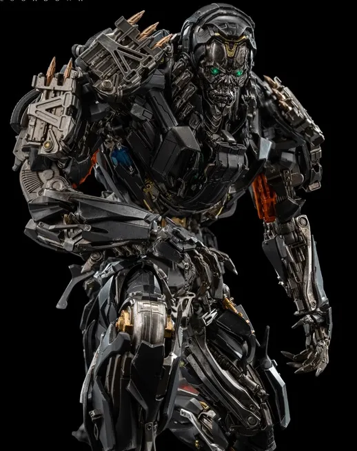 Standing approximately 9.5 inches (~24cm) tall, Transformers: Age of Extinction DLX Lockdown has approximately 60 points of articulation and features die-cast metal parts with an engineering-grade plastics frame, which allows for a dynamic range of poseability, durability, and excellent stability. DLX Lockdown features an incredibly detailed sculpt with threezero's signature weathered paint application in order to replicate the appearance as seen in the movie, numerous weapon accessories grant the ability to recreate various battle scenes.