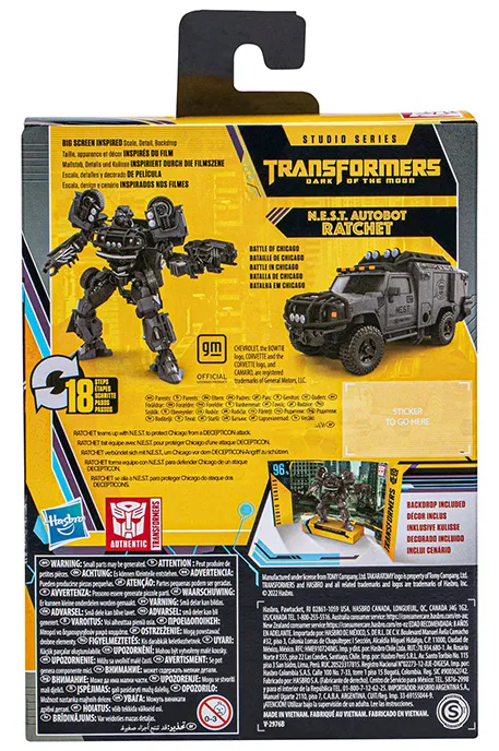 Transformers Studio Series 96BB N.E.S.T. Autobot Ratchet is Deluxe Class and stands approximately 4.5-inches tall in robot mode. 96BB N.E.S.T. Autobot Ratchet transforms from Medical Vehicle to robot and back and is screen accurate to the Transformers: Dark Of The Moon live action movie. Each Studio Series figure jumps out of the big screen and into your collection with a high attention to detail and accurate color schemes reflecting their appearance in the Transformers live action movie.