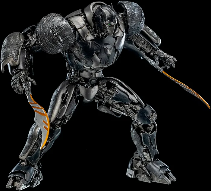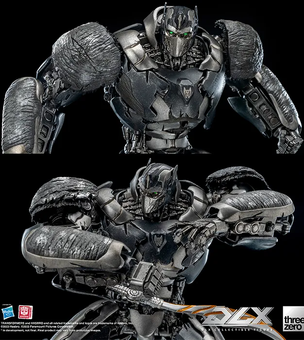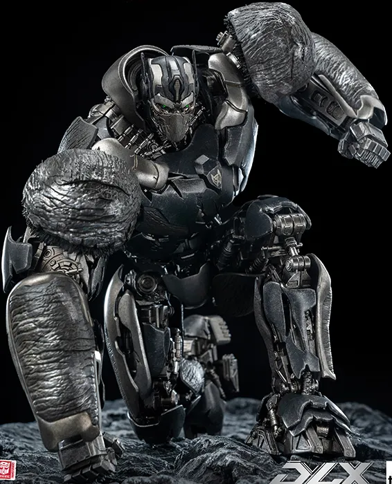 Standing at approximately 11.2 inches tall, the Transformers: Rise of the Beasts DLX Optimus Primal collectible figure captures the essence of the iconic leader of the Maximals as he appears in the film. Transformers: Rise of the Beasts DLX Optimus Primal takes the honor of having the most points of articulation in the DLX collectible toy line with approximately 74 points of articulation! He contains various interlinking segments for the arm, leg, and body movements, this dynamic range of poseability allows you to recreate the epic moments and battle scenes from the movie. Designed with a die-cast metal frame that maximum levels of durability and stability. The detailed weathered paint application brings out his battle-worn appearance, showcasing the character’s resilience and determination.