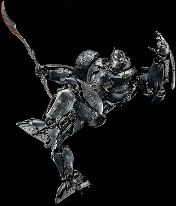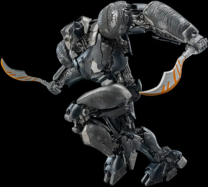 Included with the figure are several accessories that enhance the play and display possibilities. Transformers: Rise of the Beasts DLX Optimus Primal comes with two Cyber Blades that can combine into a single weapon, along with a metallic chain to connect them. Additionally, PVC fur has been added to the shoulder armor, perfectly replicating the silhouette from the film.