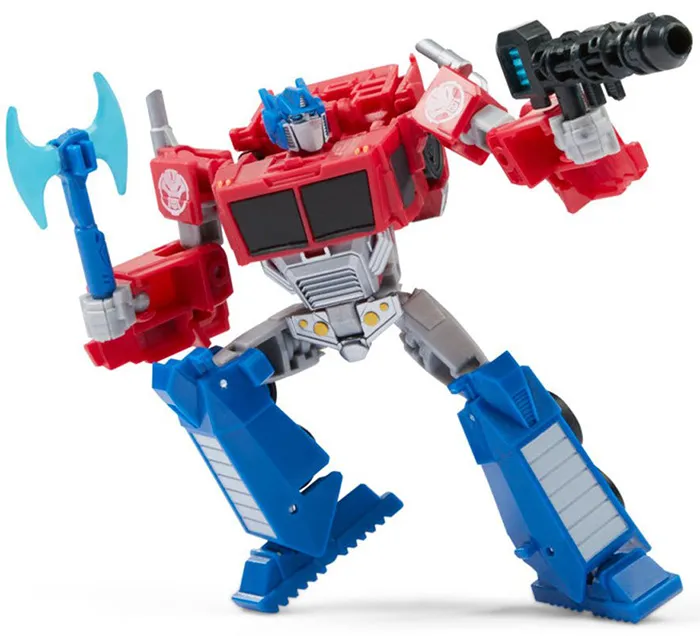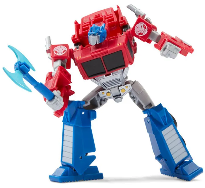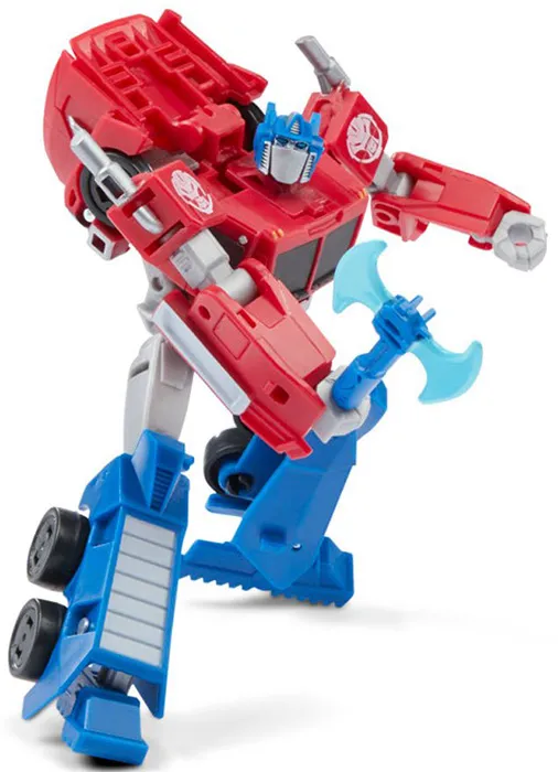 Transformers: EarthSpark introduces a new generation of Transformers robots - the first Transformers bots to be born on Earth. Together with the human family who welcomes them in and cares for them, they'll redefine what it means to be a family. Deluxe Class figures bring Transformers robots to life from the television screen right to your home! Classic red and blue Optimus Prime toy as seen in Transformers: EarthSpark animated TV series stands at an impressive 5 inches tall! Convert Transformers Optimus Prime from robot to truck mode in 19 steps. Each Deluxe Class figure comes with 1 build-a-figure piece. Combine all the pieces by collecting all Deluxe Class figures to build a figure of Dr. Meridian 'Mandroid', the villainous half-human half-robot from the animated series.