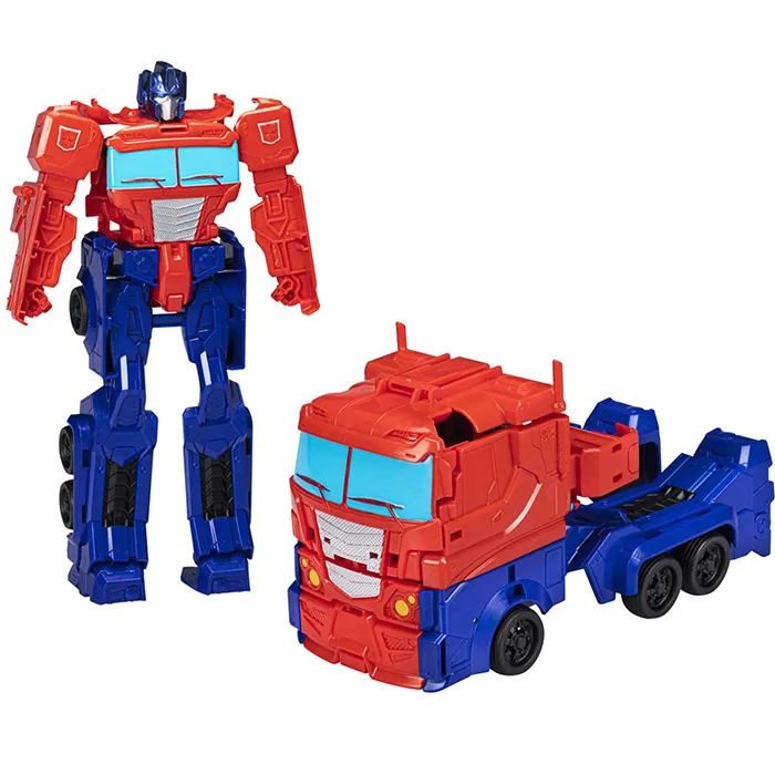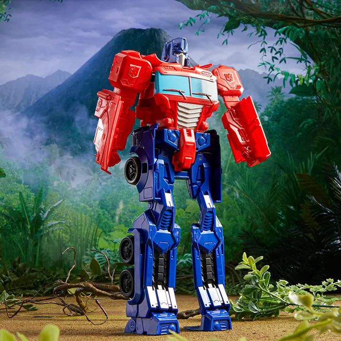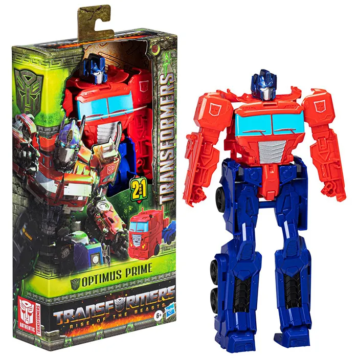 Transformers Optimus Prime Titan Changer stands approximately 11 inches tall in robot mode. Optimus Prime Titan Changer transforms from truck to robot and back and is screen accurate to the Transformers: Rise Of The Beasts live action movie. Each Transformers figure jumps out of the big screen and into your collection with a high attention to detail and accurate color schemes reflecting their appearance in the Transformers live action movie.