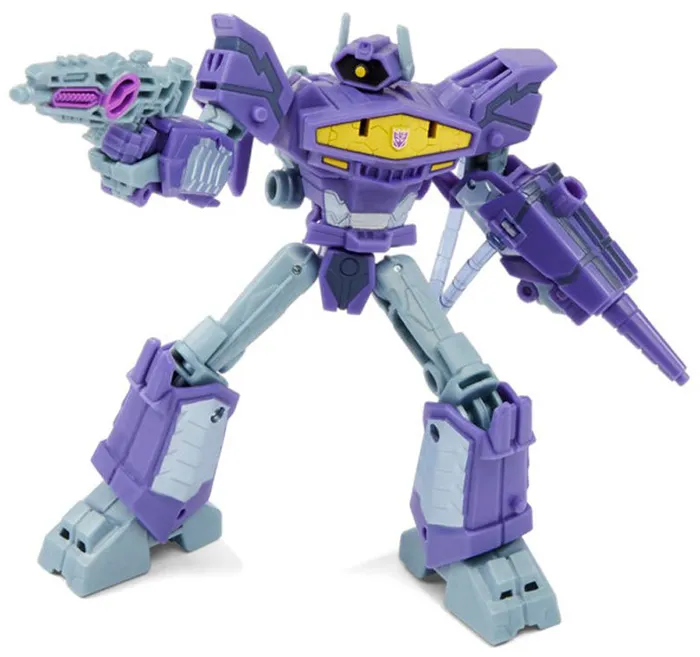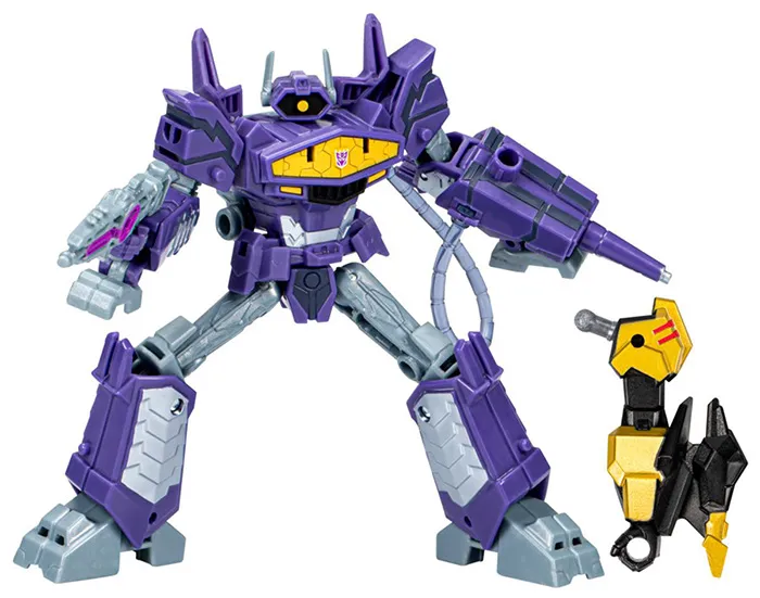 Deluxe Class figures bring Transformers robots to life from the television screen right to your home! Classic purple and silver Shockwave toy as seen in Transformers: EarthSpark animated TV series stands at an impressive 5 inches tall! Convert Transformers Shockwave from robot to Cybertronian tank mode in 20 steps.