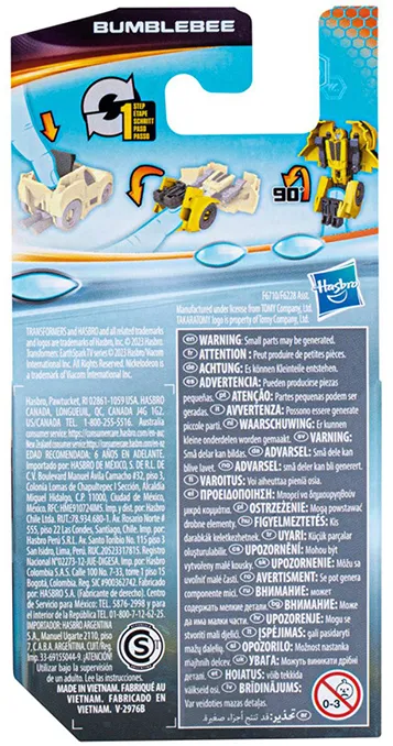 Seamlessly convert the 2 1/2-inch Bumblebee toy from sports car mode to robot around your finger! Place 1 finger on the character in sports car mode then watch the toy convert to robot mode right around the finger. Convert back to sports car mode in 1 step. Conveniently pocket-sized for on-the-go action and play.