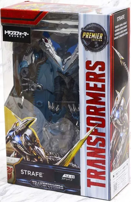 TLK-23 Strafe features Japanese language on the packaging, and is a Transformers movie character from the Transformers: The Last Knight live action movie.