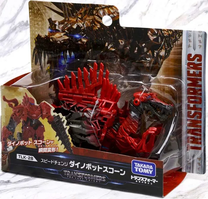 TLK-28 Speed Change Dinobot Scorn features Japanese language on the packaging, and is a Transformers movie character from the Transformers: The Last Knight live action movie.