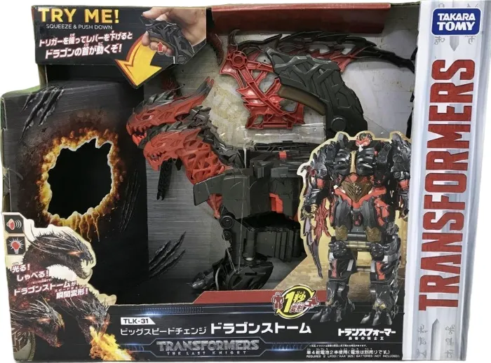 TLK-31 Big Speed Change Dragonstorm features Japanese language on the packaging, and is a Transformers movie character from the Transformers: The Last Knight live action movie.